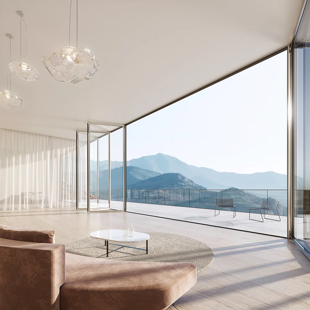 Ob in klassischem Weiß, elegantem Anthrazit oder einer Farbe Ihrer Wahl: Die Aluminiumprofile unserer Glasfaltwände können auf Wunsch strukturiert, matt oder glänzend ausgeführt werden. Auch die Öffnungsrichtung, Anzahl und Breite der Flügel sowie Zusatzoptionen wie Glasart, Griffvarianten oder integrierter Sonnenschutz werden individuell auf Ihre Wünsche abgestimmt.