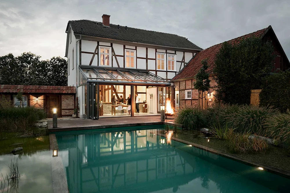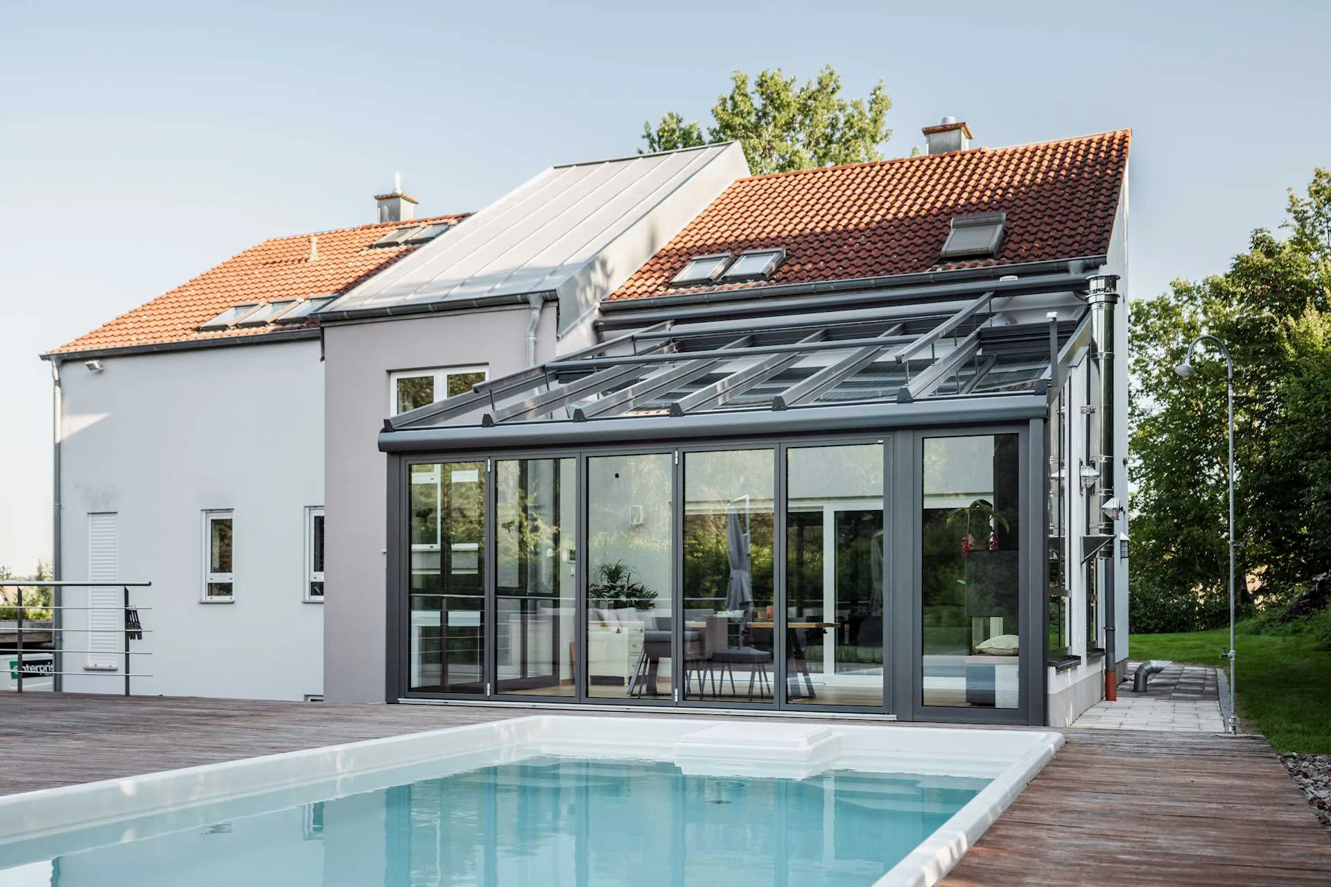 Ein Wintergarten schafft nicht nur zusätzlichen Raum, sondern auch neue Perspektiven: auf den Garten, auf die Natur, auf entspannte Stunden mit Familie und Freunden. Er verbindet drinnen mit draußen, ohne Kompromisse beim Komfort.